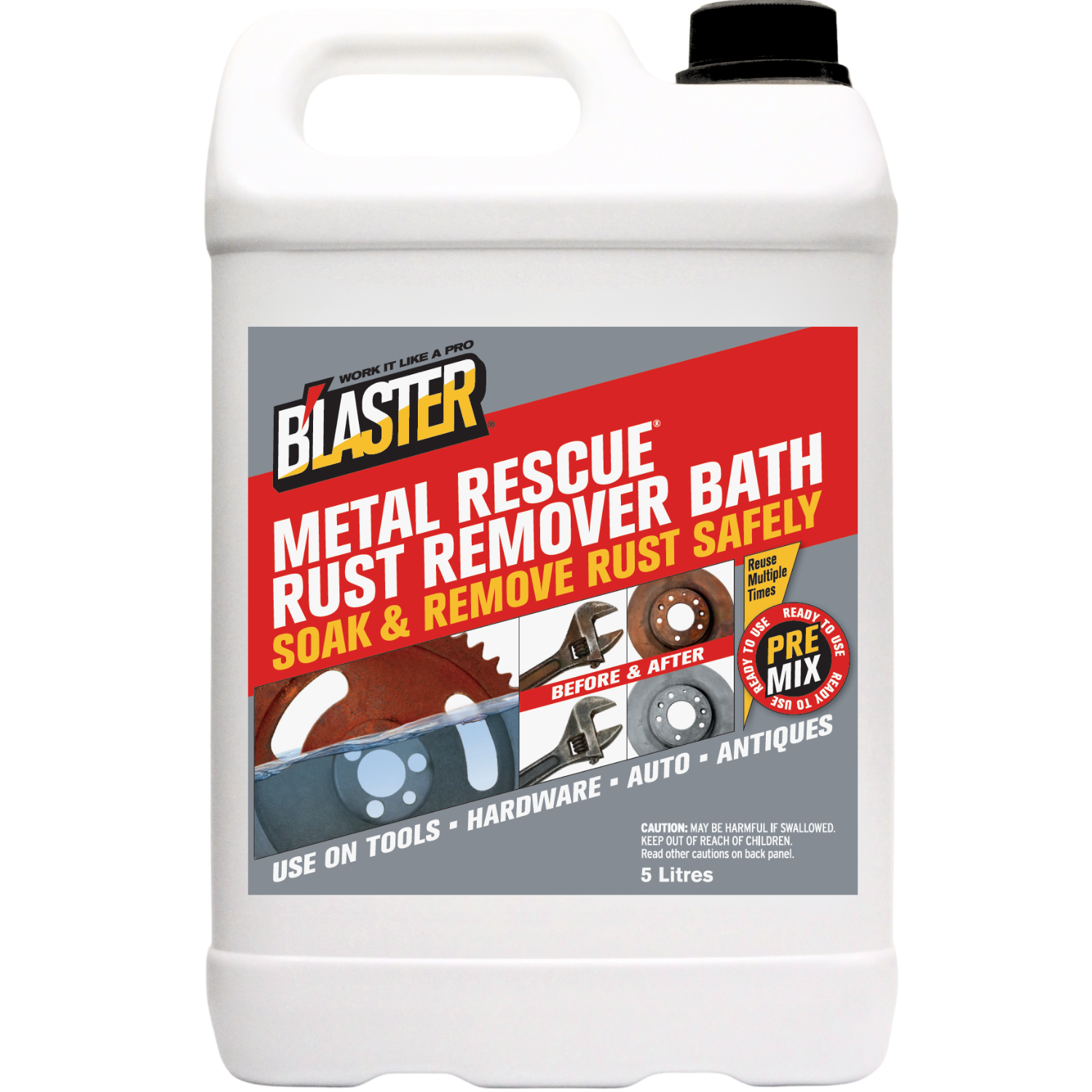 B’laster Metal Rescue Rust Remover Bath is your clean and easy solution to removing rust from iron and steel. Its water-based formula removes rust without the use of chemicals or acids.