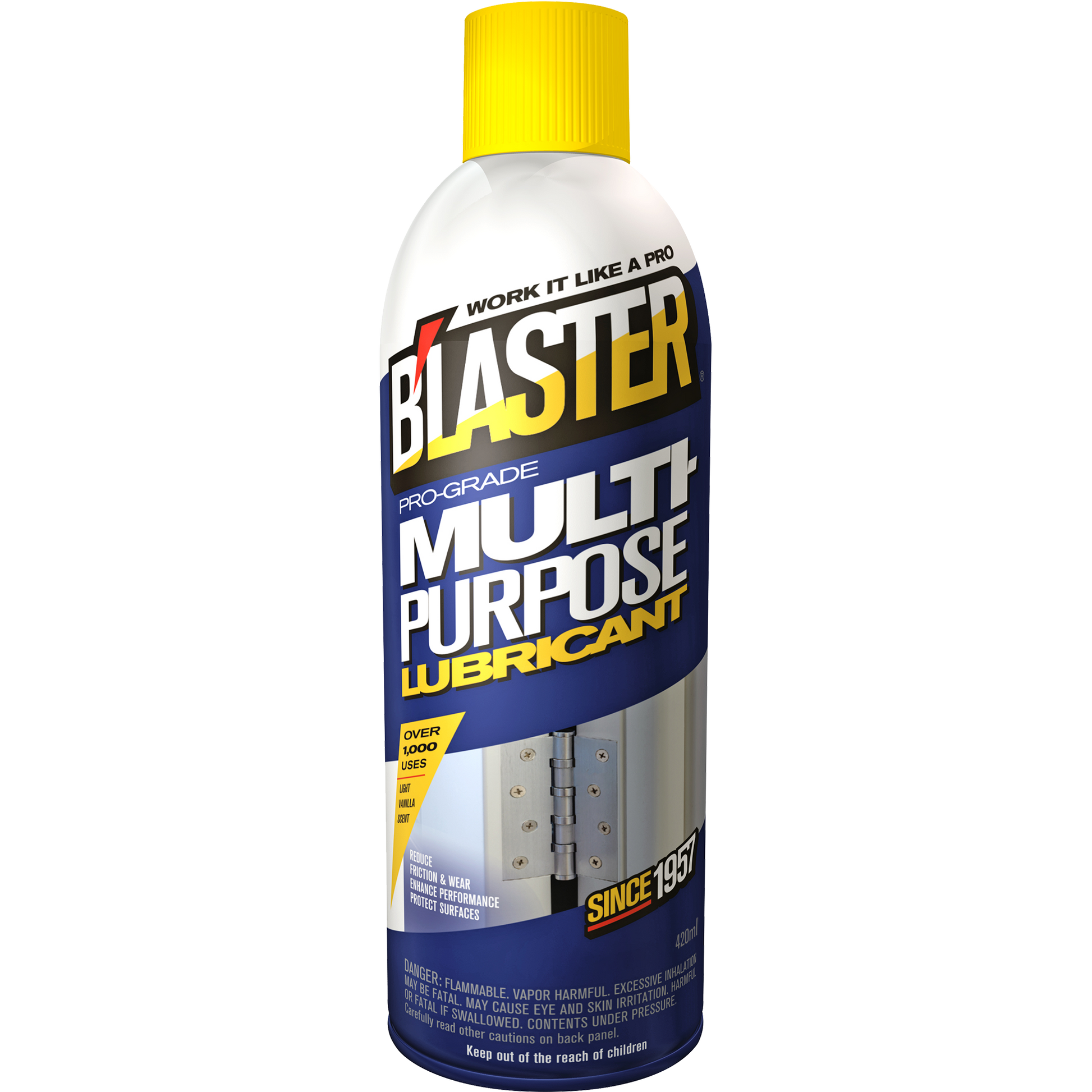 B'laster Multi-Purpose Lubricant is a high-performance formula designed to lubricate moving parts in and around the house such as window tracks, hinges, chains, glides and gears. It outperforms leading competitors, and prevents rust and further corrosion on car parts, fishing reels and tackle, all tools, firearms, sports equipment, marine applications and more.